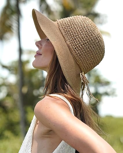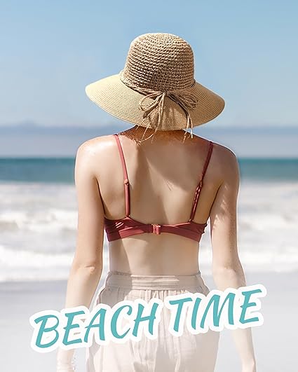 Furtalk Sun Hats for Women Beach Hat Wide Brim Handmade Straw Hat Breathable Foldable Packable Cap for Travel UPF